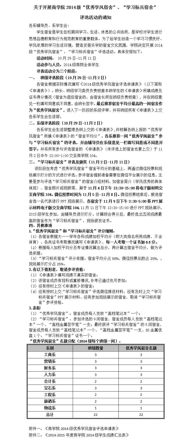 关于开展商学院2014级“优秀学风宿舍”、“学习标兵宿舍” 评选...