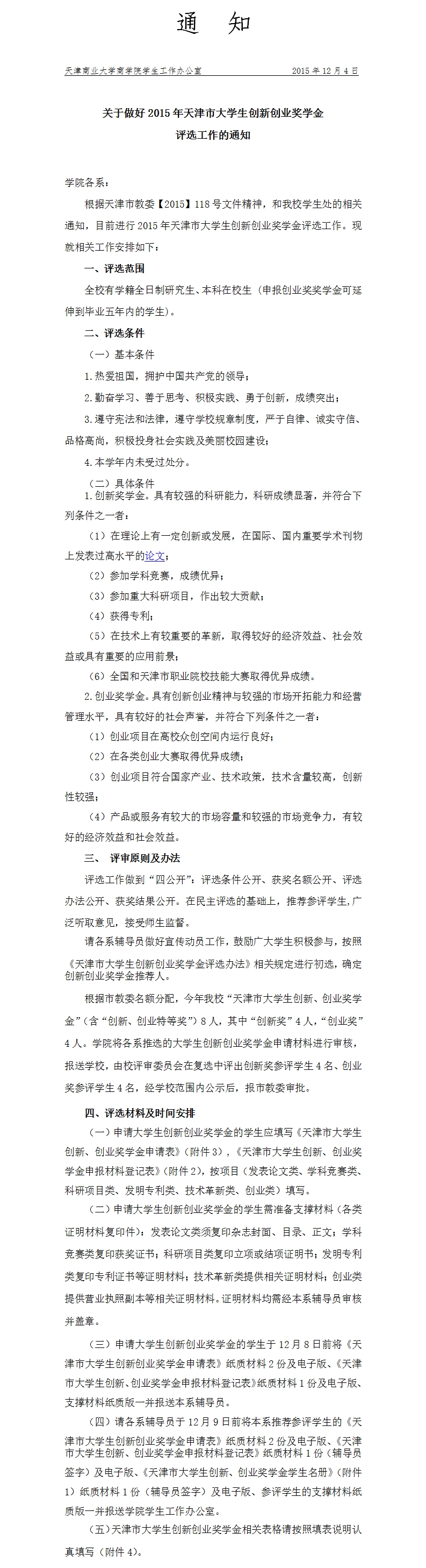 附件1-天津市大学生创新创业奖学金学生名册附件2-天津市大学生创新创业奖学金申报材料登记表附件3-天津市大学生创新创业奖学金申请表附件4-天津市大学生创新创业奖学金相关表格填写说明