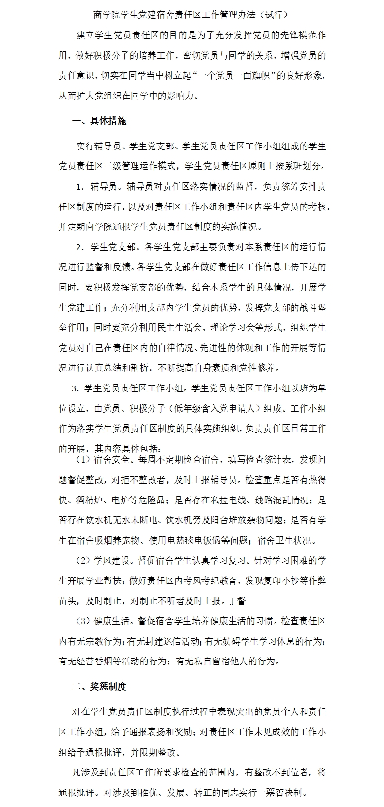 商学院学生党建宿舍责任区工作管理办法(试行)