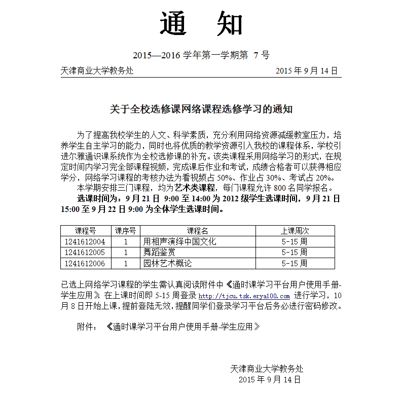 关于全校选修课网络课程选修学习的通知