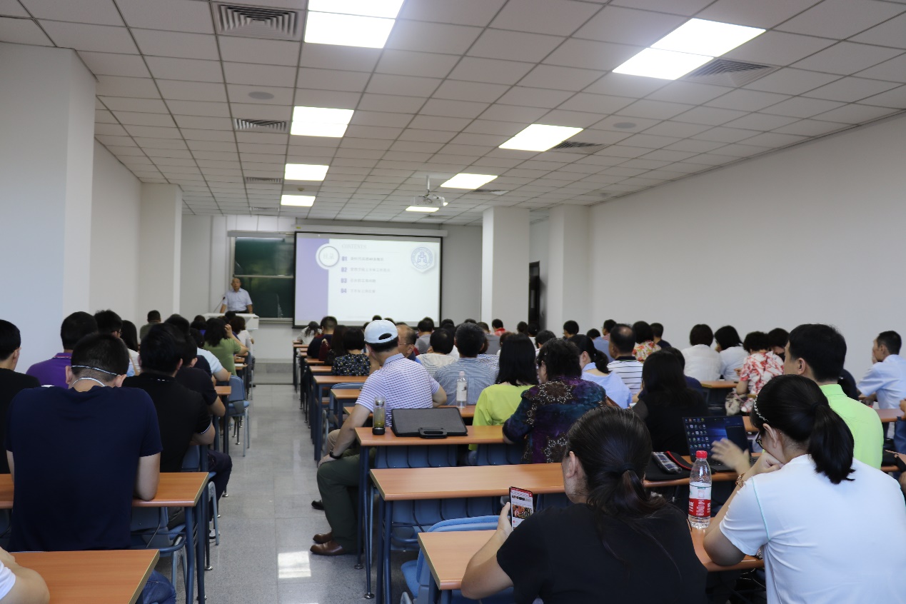 上半年工作亮点、存在的主要问题和下半年工作安排。王庆生带领全院教师对新时代高教40条进行逐一解读,并结合学院实际进行阐述。他指出要在教育教学中认真贯彻“新时代高教40条”精神,以习近平新时代中国特色社会主义思想和党的十九大精神为引领,进一步提高学科建设和科研水平,推动学院研究生教育、学生工作和党建工作更上一层楼。