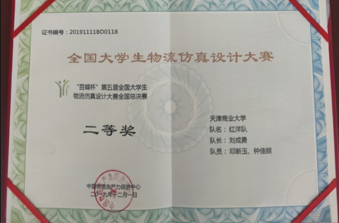 物流管理系参赛团队“红洋队”荣获二等奖,同时,指导老师陈陌获“优秀指导教师”荣誉称号。