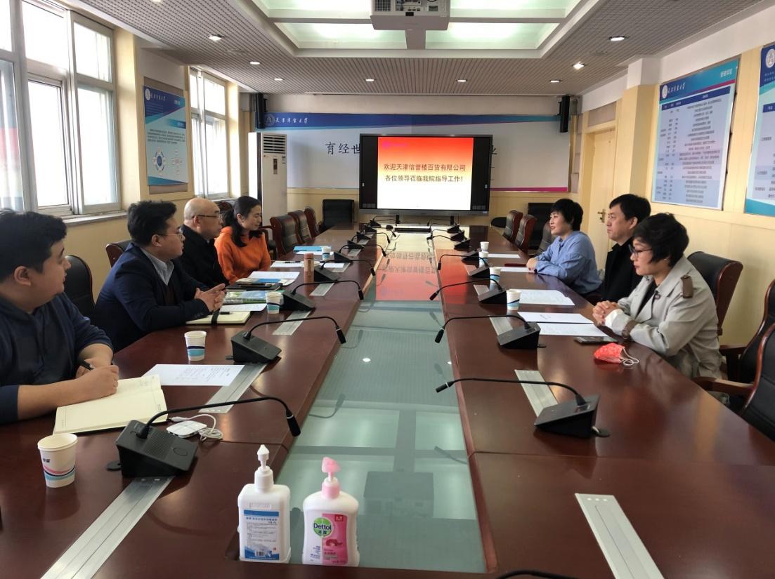 王庆生从学院组织架构、学院特色、课程设置、学院校企合作建设、学生实习等多个方面详细地介绍了学院情况。天津信誉楼百货有限公司曹茂全、曹秀伟分别对天津信誉楼百货有限公司的企业特色、机制、企业理念、员工培养和晋升机制等作了详细介绍,并希望学院能够为企业输送更多优秀人才。与会人员就校企合作方式、学生实习、实习基地共建、竞赛支持等方面进行了深入交流。