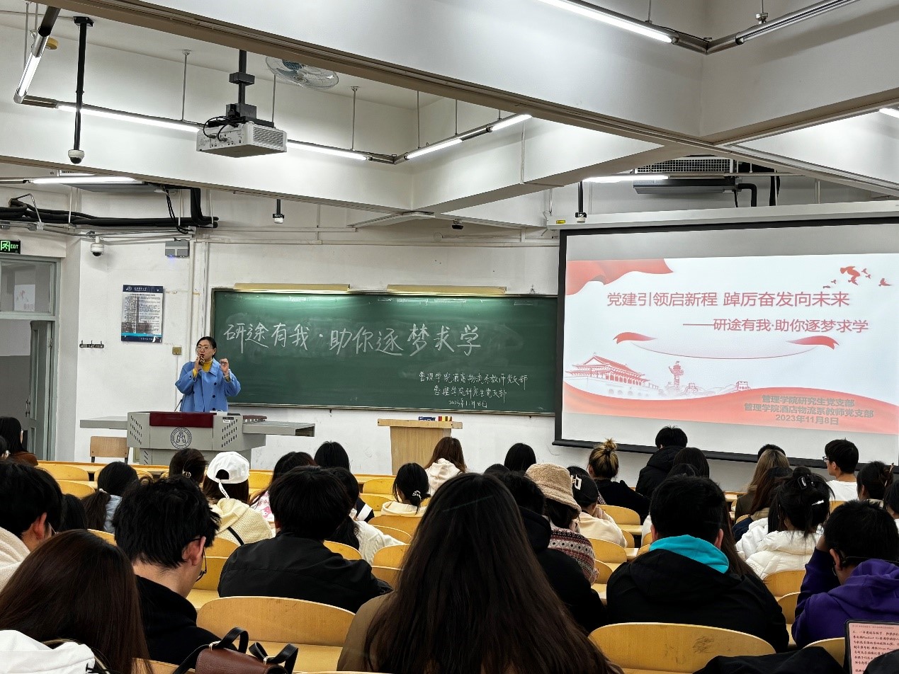 研究生党支部、酒店物流系教师党支部组织开展“党建引领启新程 踔厉奋发向未来---研途有我,助你逐梦求学”考研经验交流分享会。院党委副书记、研究生党支部和酒店物流系教师党支部党员、本科生200余人参加活动。