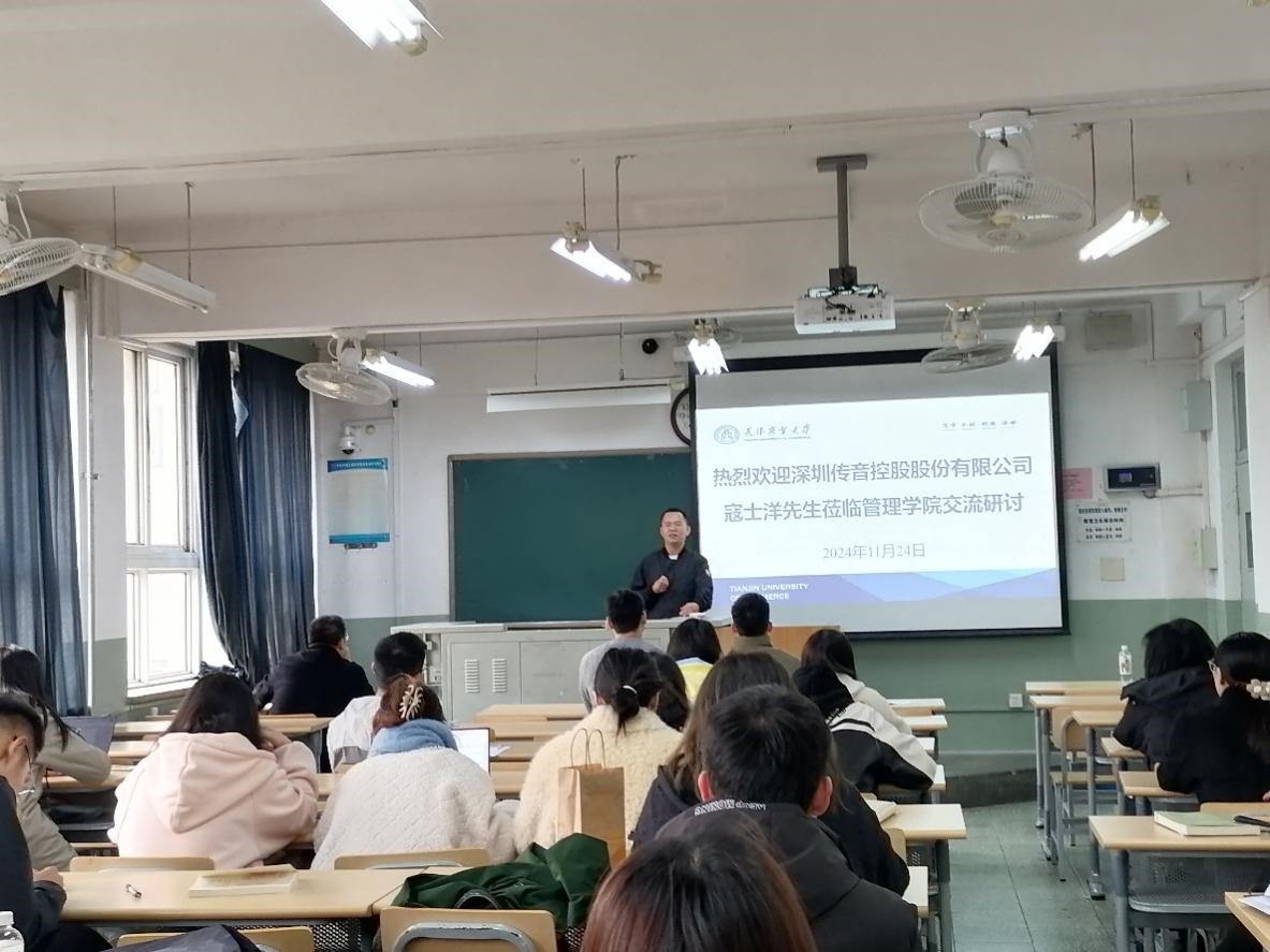 邀请深圳传音控股股份有限公司高管寇世洋经理与2024级研究生交流其开拓非洲肯尼亚等市场的经验,介绍职场心得体会。