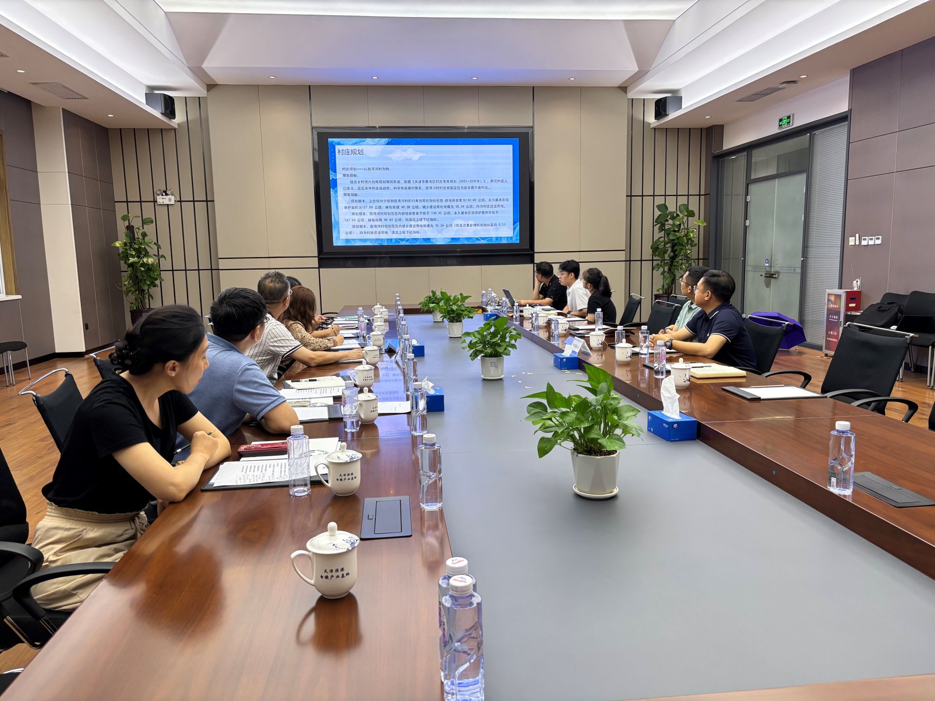 实地调研乡村土地管理,探讨土地管理制度改革与实践管理经验。静海中旺镇领导对农村土地利用管理的现状与问题进行了专题讲解,内容涵盖农村宅基地保障、集体建设用地入市、集体建设用地项目审批、乡村规划与人居环境改善等关键问题,为研究团队全面了解农村土地问题提供了丰富详实的实践资料。