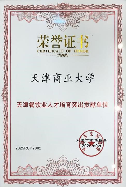 酒店管理系主任李志刚获颁“天津餐饮业高质量发展推动人物”。