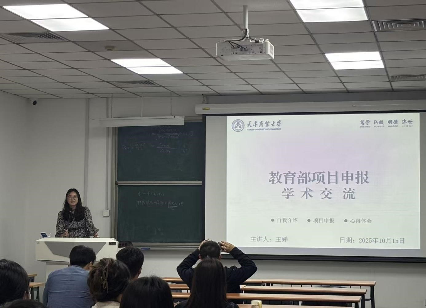 王娣以申报“教育部项目”为例,坦诚分享了在跨专业背景、纵向项目申报经验等方面的成长历程。她表示,作为青年教师,面对科研起步阶段的困难与挑战是常态,关键在于找准方向、持续积累、勇于突破。在分享环节,结合自身实践,她分享了从“找问题”“找冲突”到运用“逆向思维”等具体破题技巧,鼓励青年教师在交叉领域寻找创新点,逐步构建具有个人特色的研究方向。围绕其主持的课题《传统—现代张力下老字号异地扩张的地理解码与破局路径研究》,系统梳理了自2021年以来的科研与项目申报历程,深入浅出地讲解了选题思路与申报体会感想。她强调,成功的项目申报应紧密契合国家战略导向,精准对接学校与学院的发展定位,同时充分发挥个人研究特长,实现理论研究与现实需求的有机结合。