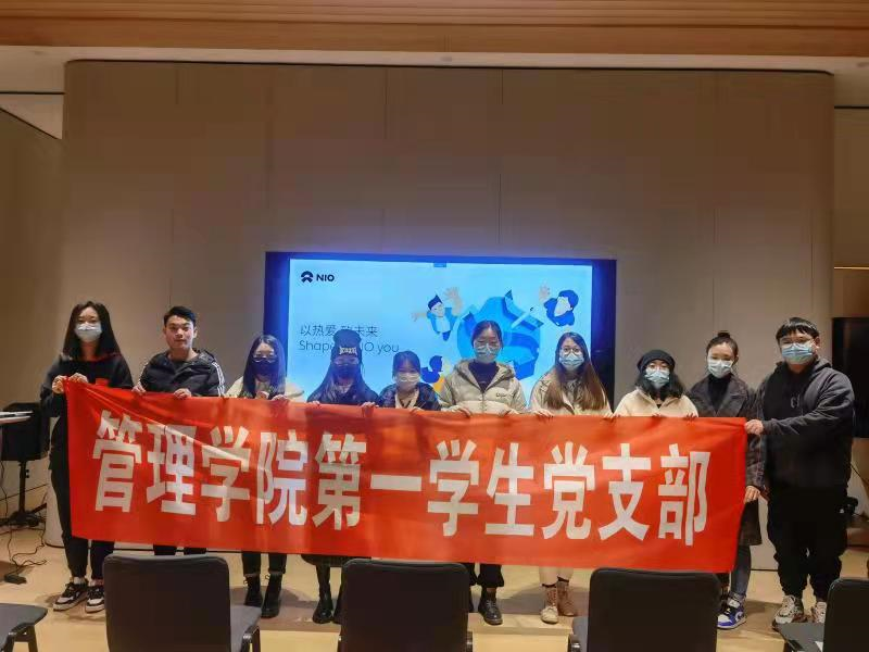 第一学生党支部党员赴蔚来中心参观学习,让学生走进企业,真实了解和感受企业的文化氛围,提高对企业的认识,改善就业观,促进学生就业。