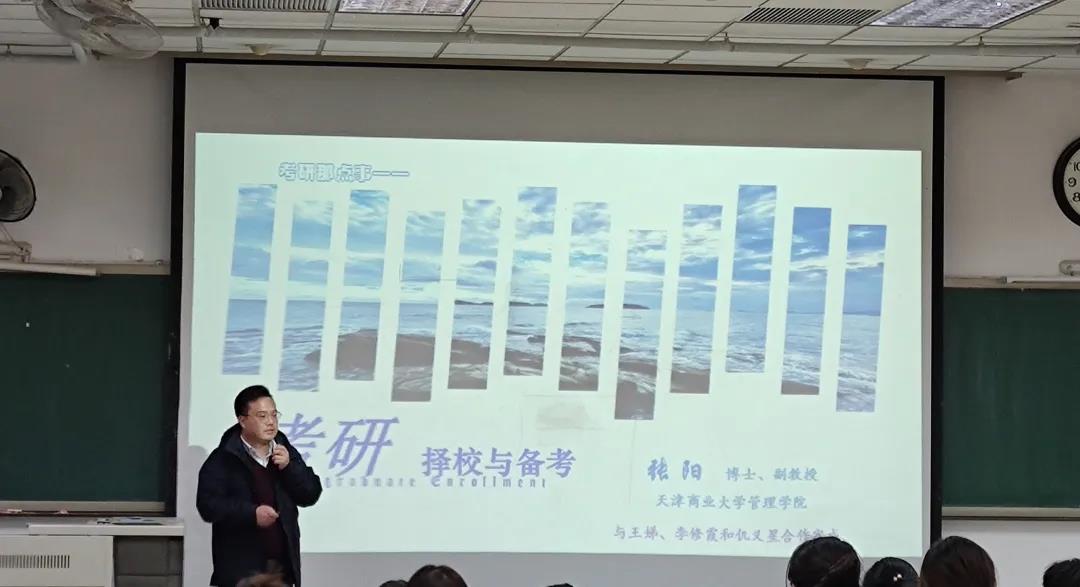 为帮助同学们提高考研成功率,合理确定考研目标,有针对性进行备考。11月24日下午,张阳老师在四教101教室给大家亲自支招,进行考研专项指导。关于考研与就业,如何选择?李秀峰老师为大家答疑解惑,讲解了如何更好就业的问题。现场听众热情洋溢, 2019级学生共计200余人参加了此次讲座。