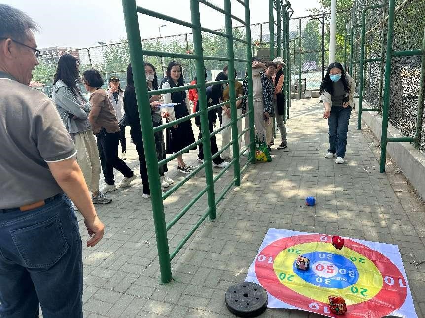 在沙包投掷区域,同样趣味横生。教师们站在投掷线后,手持沙包,屏气凝神,用力向目标区域投出。有的教师精准命中靶心,展现出惊人的协调性和专注力;有的虽与目标擦肩而过,却依然开怀大笑,享受着游戏带来的欢乐。现场不时传来阵阵笑声,轻松愉悦的氛围感染着每一个人。